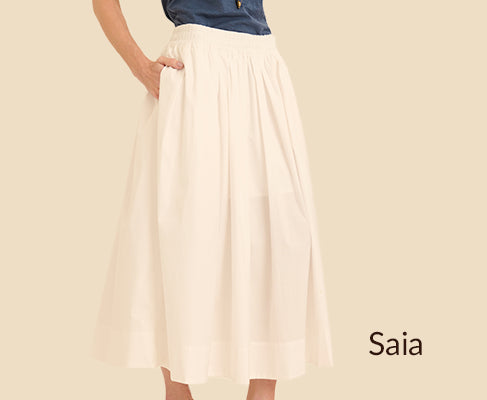 Descrição: Saia em tricoline de algodão, com comprimento midi e bolsos faca laterais. A modelagem regular garante caimento leve e movimento natural. Uma peça versátil e atemporal para o dia...